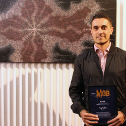 Kaurna, Narungga artist Jay Milera was announced the winner of the $5,000 Don Dunstan Foundation Our Mob Emerging Artist Prize during the 2021 OUR MOB awards ceremony at Adelaide Festival Centre.